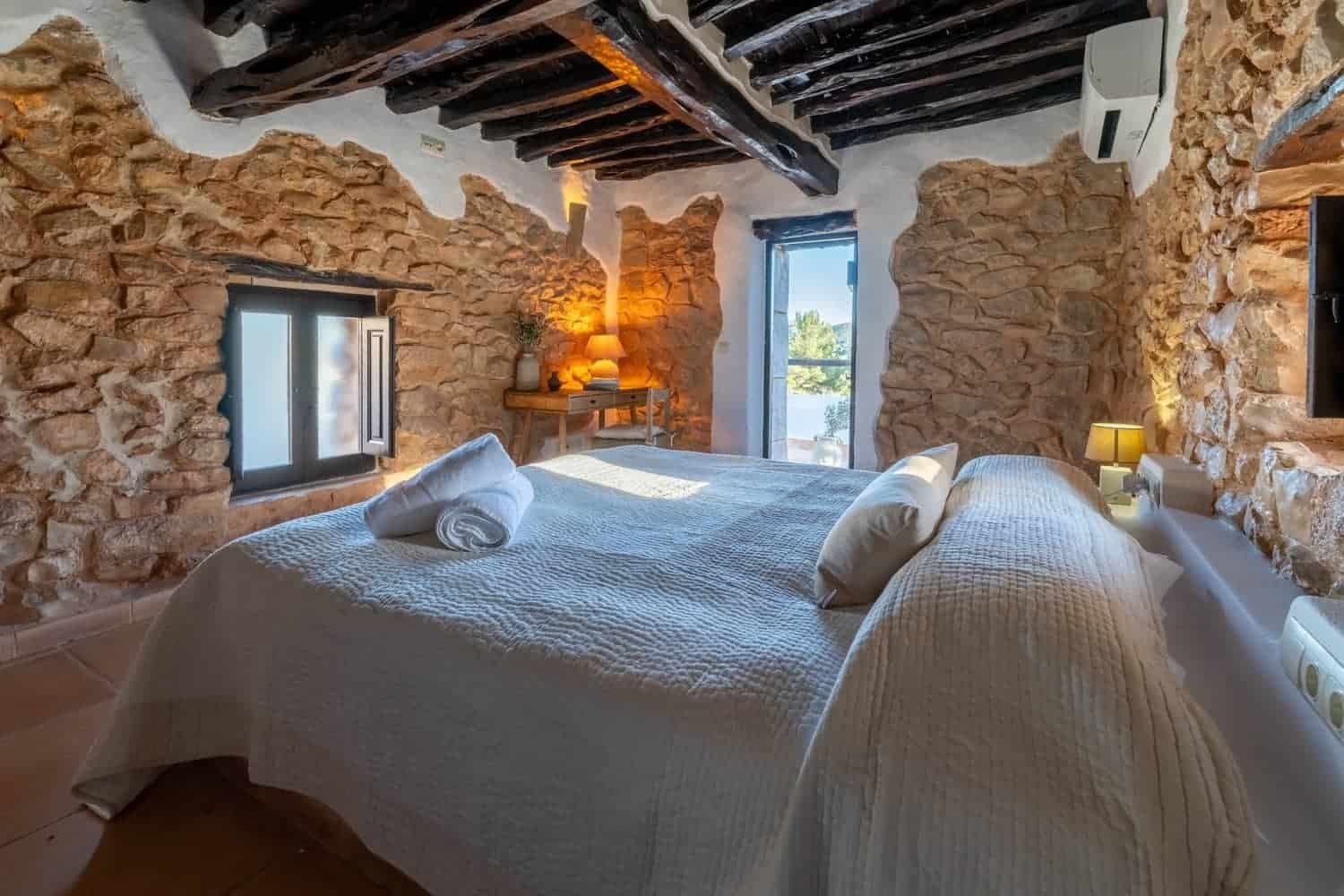 The estate is situated in the north of Ibiza, a short drive from several beautiful villages and beaches, which are famous for the crystal-clear turquoise water and spectacular sunsets.